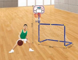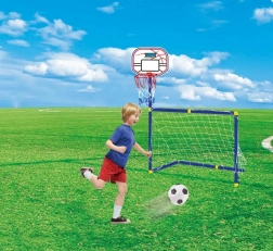 Ten dziecięcy zestaw sportowy 2w1 łączy piłkarską bramkę i kosz do koszykówki, dzięki czemu dzieci mogą w każdej chwili wybrać, czy będą strzelać gole, czy rzucać do kosza. Dzięki kompaktowym wymiarom (bramka 88 × 55 × 45 cm, kosz 87 cm) sprawdzi się zarówno w pokoju dziecięcym, jak i w ogrodzie.