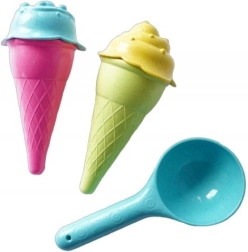 Zestaw do piaskownicy dla małych lodziarzy: wafelek, gałka i łyżka do serwowania, by tworzyć idealne „lody” z piasku. Łatwe nabieranie, zabawa na świeżym powietrzu i rozwój kreatywności podczas zabawy na plaży i placu zabaw.