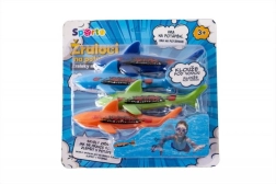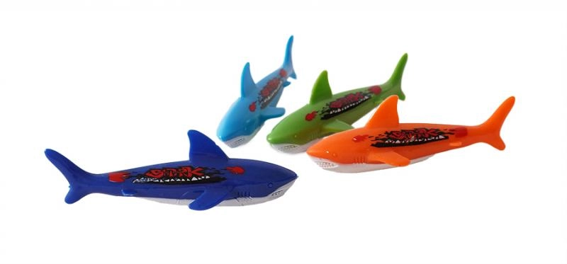 4 kolorowe rekiny, które po wrzuceniu do wody toną, a ty musisz je wyłowić.