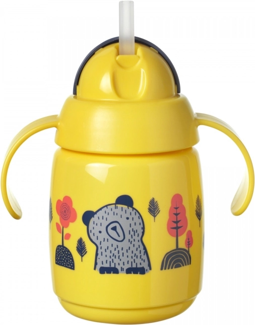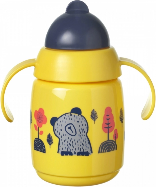 Żółty treningowy kubek Tommee Tippee to świetna alternatywa dla klasycznych kubków niekapków. Kubek ma miękką silikonową słomkę, która ułatwia picie bez konieczności nadmiernego przechylania. Obciążenie słomki umożliwia picie pod dowolnym kątem. Uchwyt jest zaprojektowany tak, by łatwo mieścił się w małych dziecięcych dłoniach, a kubek wspiera rozwój mowy i motoryki orofacjalnej.
