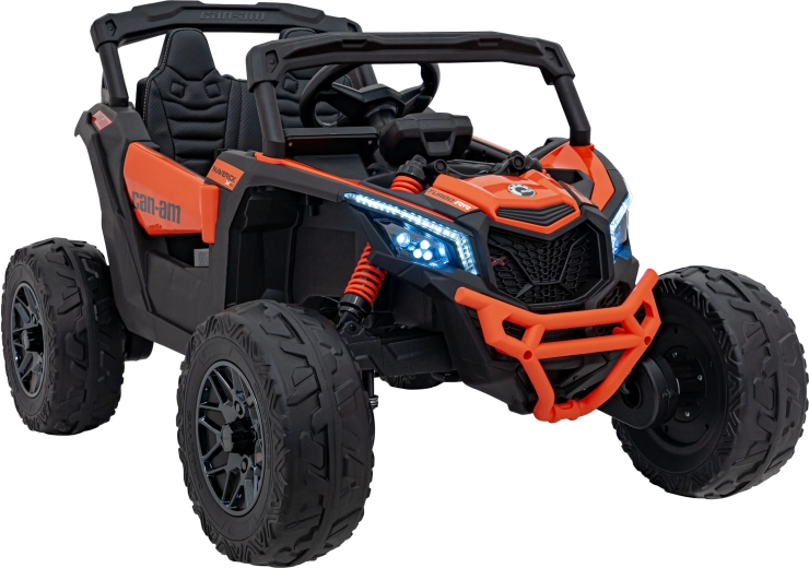 Wyposażone w duże gumowe koła i światła LED, Can-Am Maverick daje poczucie prawdziwej jazdy. Dzieci mogą cieszyć się wygodną jazdą dzięki ekoskórzanym siedzeniom i pasom bezpieczeństwa.