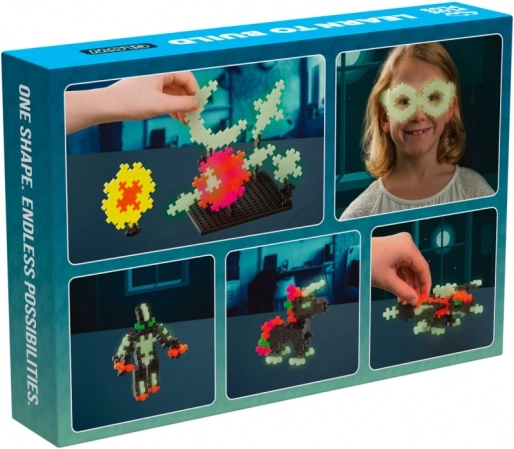 Zestaw Plus-Plus Naucz się budować Świecące w ciemności łączy zabawę z nauką. Dzięki 500 elementom, z których 140 rozświetla się w półmroku, dzieci zbudują duchy, nietoperze czy postacie, a jednocześnie rozwiną kreatywność i wyobraźnię przestrzenną. Prosty kształt elementów umożliwia łatwe łączenie w modele 2D i 3D.