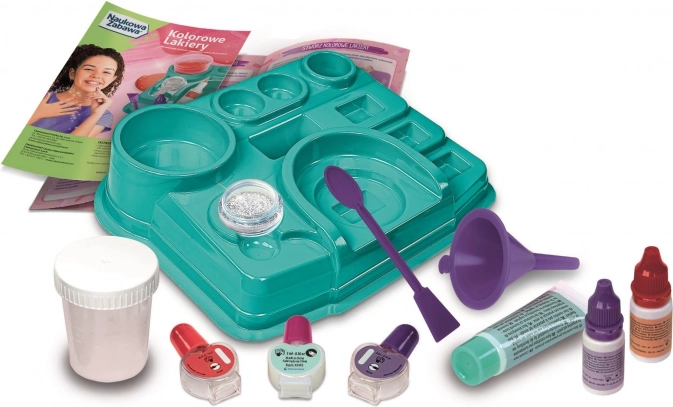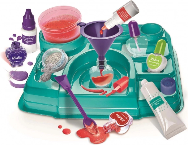 - Zabawna plansza pozwala łatwo mieszać bazy i pigmenty zawarte w zestawie oraz tworzyć kolorowe lakiery do paznokci.