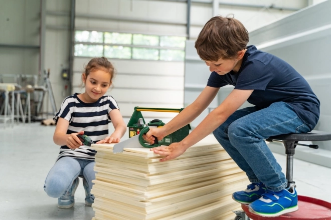 Zabawa w projektowanie, wkręcanie i „cięcie” naśladuje prawdziwe prace i rozwija zręczność oraz wyobraźnię.