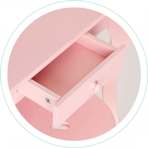 Dominantą toaletki jest obszerne lustro o urokliwym kształcie z serduszkiem, które doda pokojowi czaru i pozwoli dzieciom wygodnie się przeglądać oraz bawić w salon piękności.