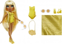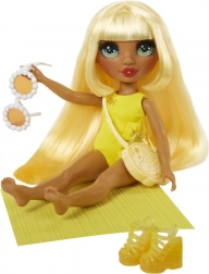Lalka jest gotowa na dzień pełen zabawy dzięki swojemu stylowemu kostiumowi, który zawiera dopasowane sandały i okulary przeciwsłoneczne. Idealna na plażę, do basenu lub wanny, wszędzie tam gdzie pozwala fantazja.