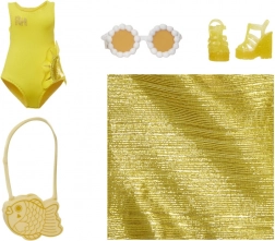 W zestawie modowe akcesoria takie jak kostium kąpielowy, okulary przeciwsłoneczne i torba w kształcie ryby.