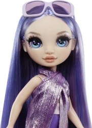 Lalka ma długie fioletowe włosy, które świetnie komponują się z jej dużymi, niebieskimi oczami. Stylowy, błyszczący strój wraz z fioletowymi okularami przeciwsłonecznymi wprowadza modowe motywy do zabawy.