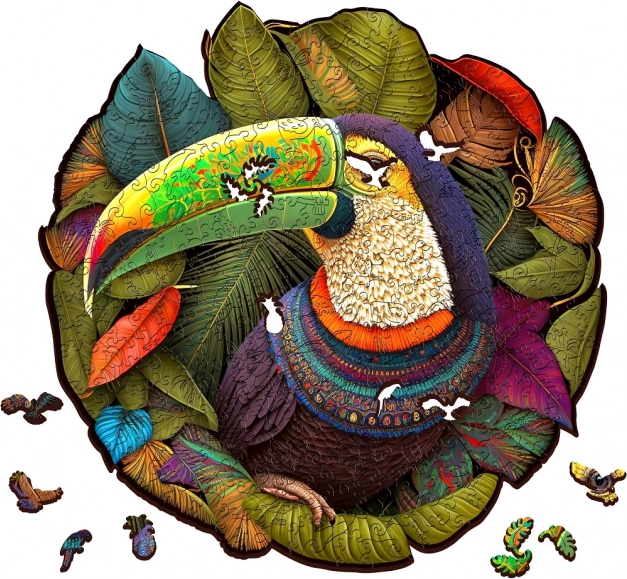 Odkryj kreatywną zabawę z drewnianymi puzzlami z motywem tukana, łączącymi premium jakość wykonania, ekologiczne, w 100% certyfikowane drewno FSC oraz unikalne kształty elementów. Dzięki precyzyjnemu cięciu laserowemu i drukowi UV uzyskasz żywe kolory, gładkie krawędzie i świetne wrażenia z układania dla całej rodziny.