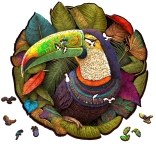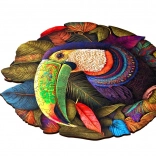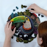 Detaliczny druk UV podkreśla egzotycznego tukana i liście dżungli. Gotowe puzzle zmienią się w przyciągającą wzrok dekorację ścienną.