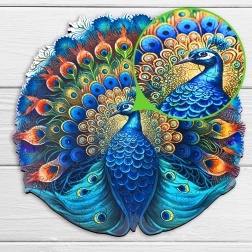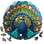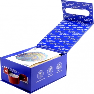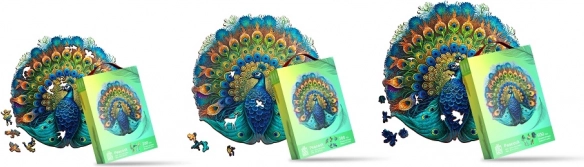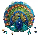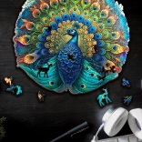 Te drewniane puzzle w kształcie pawia zachwycają pięknym wzornictwem i żywymi barwami. Dzięki cyfrowemu drukowi UV kolory są bardziej realistyczne i urzekną każdego miłośnika układanek.