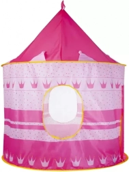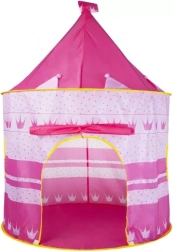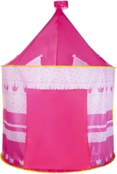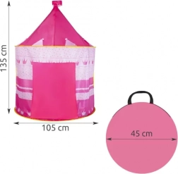 Stylowy różowy namiot w kształcie zamku z nadrukiem koron pobudza kreatywną zabawę i wyobraźnię. Dwa siatkowane okienka zapewniają cyrkulację powietrza i dobrą widoczność, wejście można wygodnie zwinąć i zapiąć na rzep. Przestronne wykonanie pomieści kilkoro dzieci i stworzy przytulny kącik do czytania i zabawy.