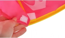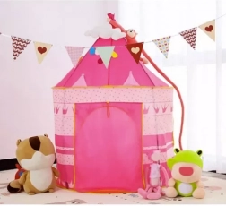 Różowy motyw z koronami, dwa siatkowane okienka i wejście na rzep tworzą przytulne i przewiewne miejsce do zabawy. Przestrzeń pomieści także więcej dzieci jednocześnie.