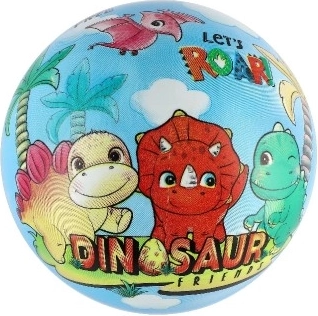 Kolorowe ilustracje dinozaurów czynią z piłki atrakcyjną zabawkę, która zachęca dzieci do ruchu i wspólnej zabawy.