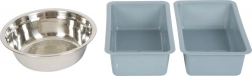 - 2 wyjmowane miski, obrotowe pokrętła, wpuszczone otwory na wąż/akcesoria