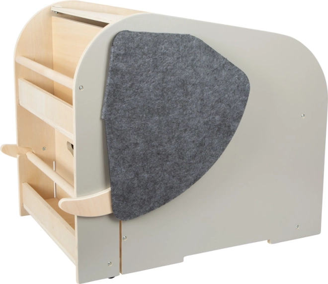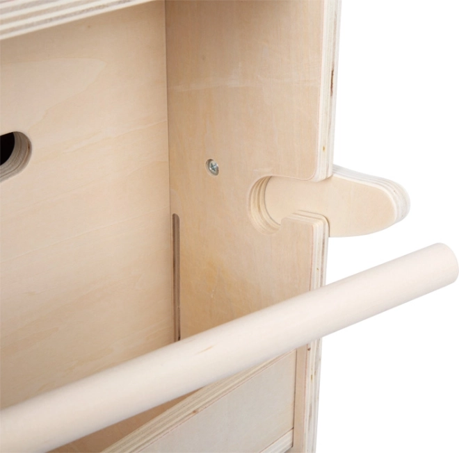 Między „kłami” znajduje się wysuwana drewniana rurka, na którą zawiesisz rolkę papieru – rysowanie jest zawsze pod ręką, a porządek pozostaje zachowany.