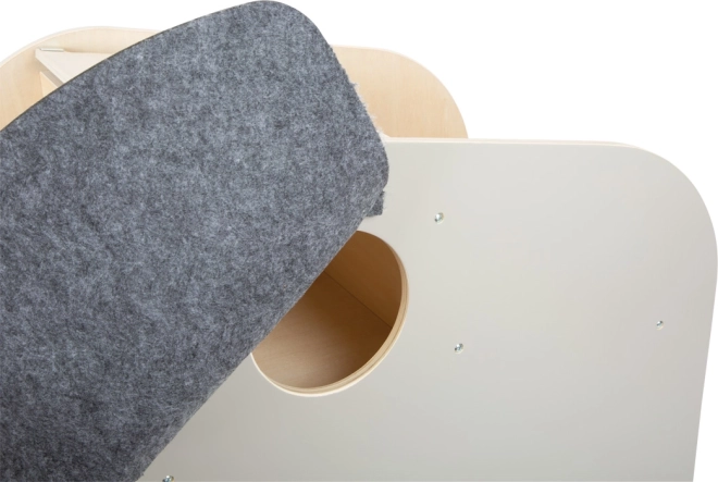 - Zrównoważony design: naturalne drewno i wysokiej jakości filc, stonowane kolory, zaokrąglone krawędzie.
