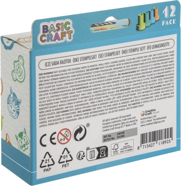 Wesołe stemple Basic Craft oferują niekończące się możliwości tworzenia dla najmłodszych. Dzięki samotuszującej konstrukcji nie są potrzebne dodatkowe poduszki z tuszem, co gwarantuje proste i czyste użytkowanie. Idealne do kreatywnych aktywności i zajęć edukacyjnych.