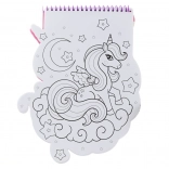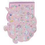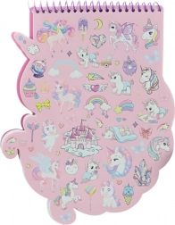 Wycinane okładki w kształcie dinozaura lub jednorożca oraz górna spirala zapewniają wygodne przewracanie stron i ciekawy wygląd.