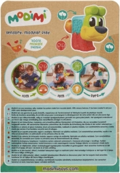 Piesek Dexter stanie się ulubionym towarzyszem najmłodszych! Ma miękki w dotyku gumowy nosek i pyszczek, teksturowany brzuszek-guzik, zestaw psich łapek oraz ogonek. Moduły z różnych zestawów Modimi można łączyć, zapewniając dzieciom jeszcze więcej świetnej, kreatywnej zabawy!