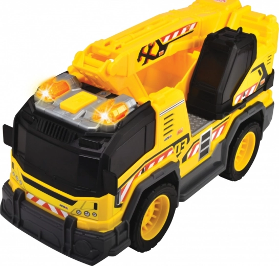 Ciężarówka bez napędu, z funkcją świetlną i dźwiękową. Koparka na platformie z obrotowym ramieniem (360°). Maksymalna wysokość ramienia 34 cm. Funkcja Try Me, baterie w zestawie. Długość 30 cm, wiek 3+.