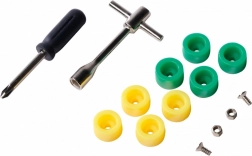 W zestawie znajdują się zapasowe bushingi, śrubki, klucz T oraz śrubokręt – łatwa konserwacja i szybkie strojenie fingerboardu.