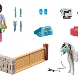 Koń z kantarem, derka, kuferek z narzędziami, szczotki i naklejki z taśmami fizjoterapeutycznymi pozwalają tworzyć różne scenariusze opieki i terapii.