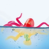 Pod wpływem ciepłej wody ośmiornica przybiera żółte odcienie – to zabawny efekt, który pobudza ciekawość i sprzyja interaktywnej zabawie.