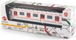 Odkryj szczegółowy model legendarnego praskiego metra, stworzony we współpracy z miastem stołecznym Praga i Przedsiębiorstwem Transportu Miejskiego m.st. Pragi. Metalowa konstrukcja zapewnia trwałość, realistyczne wykonanie zachwyci kolekcjonerów i dzieci, a dzięki napędowi pull-back metro po naciągnięciu samo rusza.
