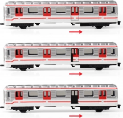 Poszczególne wagony można łatwo łączyć ze sobą. Jedne drzwi otworzysz dźwignią na spodzie wagonu dla jeszcze bardziej realistycznej zabawy.