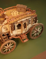 Wróć do epoki powozów konnych z elegancką pozytywką w kształcie dyliżansu, którą złożysz samodzielnie. Model z naturalnego drewna oferuje mechaniczny ruch po nakręceniu sprężyny, skrętne przednie koła oraz uroczą melodię. Dzięki 199 precyzyjnie wyciętym elementom i średniemu poziomowi trudności to idealny prezent i dekoracja dla miłośników retro i sprytnego relaksu.