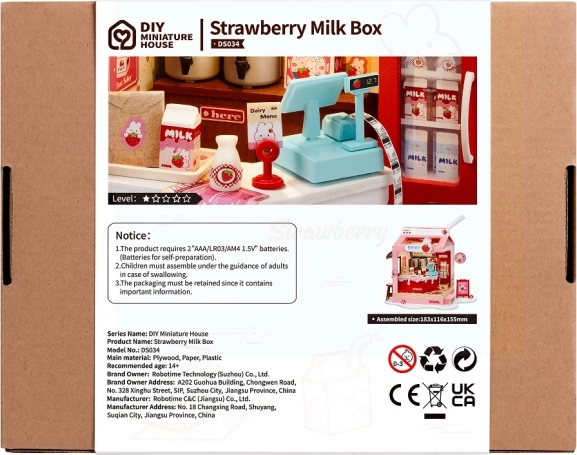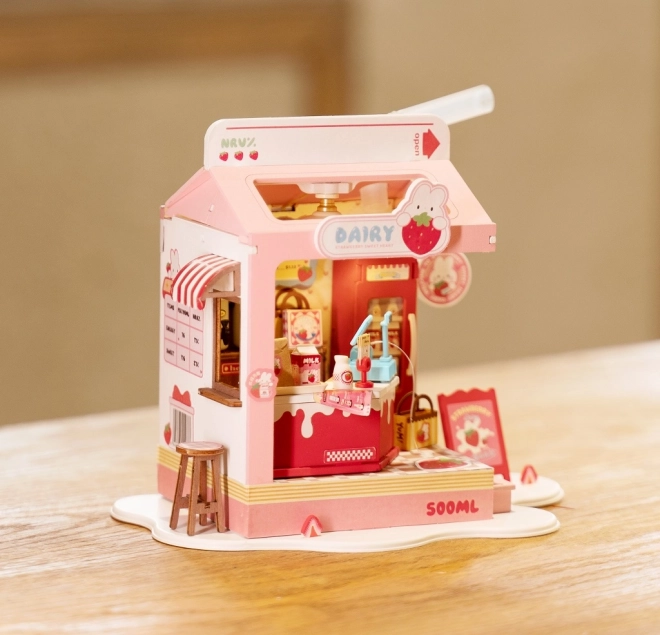 Zbuduj uroczy Mleczny bar Strawberry marki Robotime i ozdób swój pokój oryginalną miniaturą. Zestaw oferuje detalne wykonanie, oświetlenie LED oraz przyjemne doświadczenie budowy w około 90 minut. W opakowaniu znajdziesz kompletne akcesoria, w tym klej i narzędzia – wystarczą własne nożyczki. Idealny do kreatywnego relaksu oraz jako prezent dla miłośników miniatur.