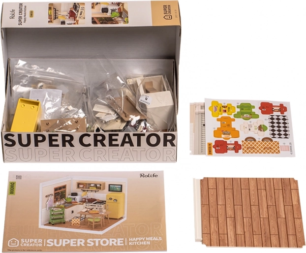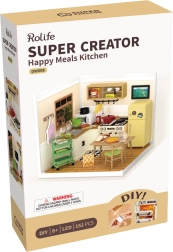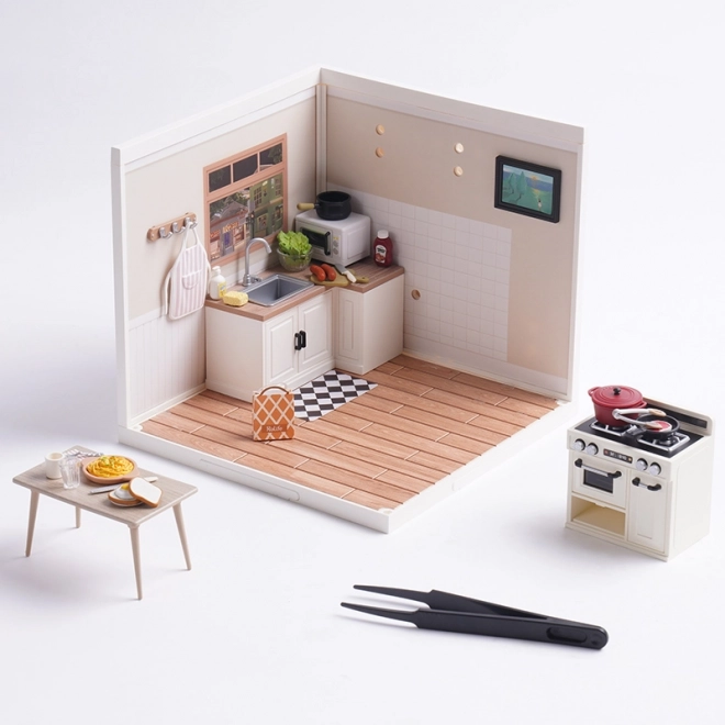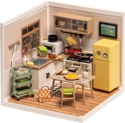 Odkryj świat dopracowanych miniatur ROBOTIME i stwórz spokojną kuchnię w stonowanych barwach. Model obejmuje kuchenkę, szafki, jadalniane meble oraz drobne akcesoria, które wyglądają naturalnie i autentycznie. Dzięki oświetleniu LED każdy detal zyskuje na wyrazistości, a Twoje dzieło stanie się ozdobą półki lub biurka.