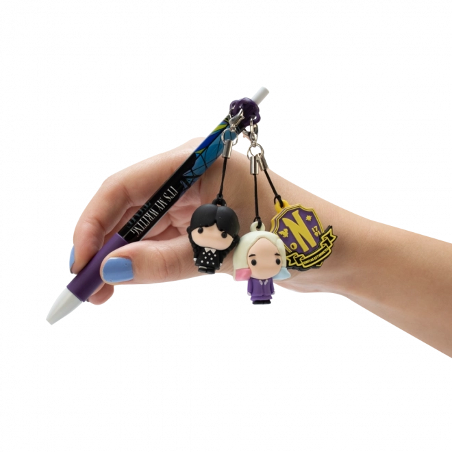 Unikalny design z ruchomą postacią Wednesday, która czyni pisanie zabawnym.