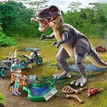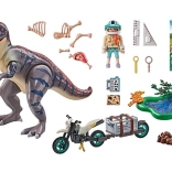 Z zestawem PLAYMOBIL Polowanie na T-Rexa dzieci przeniosą się do świata dinozaurów. Badaczka na motocyklu z wózkiem bocznym wyrusza na wyprawę śladami T-Rexa. Po drodze znajduje szczątki szkieletu i ogromny odcisk stopy. Starcie z gigantycznym T-Rexem jest nieuniknione. Zestaw wspiera dziecięcą wyobraźnię i zabawę w odgrywanie ról dzięki detalom i ruchomym elementom.