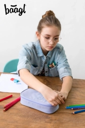 Szkolny piórnik Baagl Lilac jest idealny do codziennego użytku w szkole. Dzięki twardej etui niezawodnie chroni przybory do pisania, a jednocześnie zapewnia szybki przegląd zawartości dzięki odchylanej wewnętrznej przegrodzie. Elegancki, fioletowy design łatwo dopasujesz do innych szkolnych akcesoriów.
