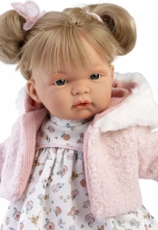 Wysoka jakość wykonania łączy miękkie materiałowe ciało dla przyjemnego przytulania oraz zmiękczany winyl na głowie i kończynach dla wiernych detali. Lalka jest ręcznie wykonana w Hiszpanii i gotowa do użycia zaraz po wyjęciu blokady. W zestawie znajdują się 3× baterie guzikowe LR44 oraz opakowanie prezentowe. Kompatybilna z oryginalnymi ubrankami Llorens dla lalek o wysokości 38 cm.