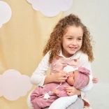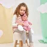 Ta ręcznie wykonana lalka zachwyca delikatną mimiką, pięknymi rzęsami oraz szczegółowo ukształtowanymi rączkami i nóżkami z winylu. Tekstylny brzuszek jest przyjemny do przytulania, a lalka po naciśnięciu brzuszka wydaje dźwięk płaczu, co wspiera odgrywanie ról i rozwój empatii.