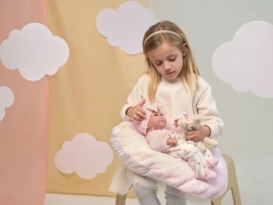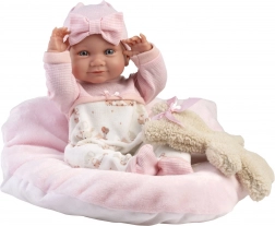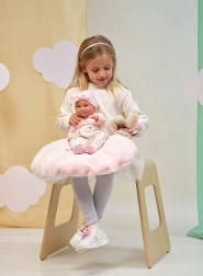 W zestawie znajduje się dwuczęściowy komplet ubranek oraz poduszka, więc dzieci mogą bawić się w usypianie lub przewijanie. Lalka ma ruchome ręce, nogi i głowę, co wspiera rozwój małej motoryki i kreatywną zabawę. Idealna jako prezent dla małych opiekunek i kolekcjonerek lalek.
