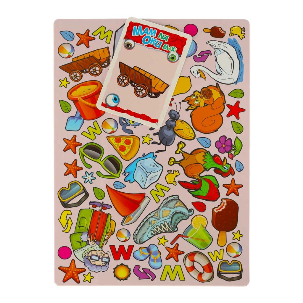 Edukacyjna gra dla dzieci Mam na oku Maxi jest idealna dla większych grup i małych dzieci. Ta gra rozwija wzrok i umysł graczy, gdy próbują znaleźć konkretną ilustrację na jednej z sześciu różnorodnych plansz. Dodatkowo, jeśli trzeba będzie wybrać ilustrację według określonego kryterium, gra stanie się jeszcze zabawniejsza. Plansze są dwustronne, co dodaje dynamiki i elementu zaskoczenia.