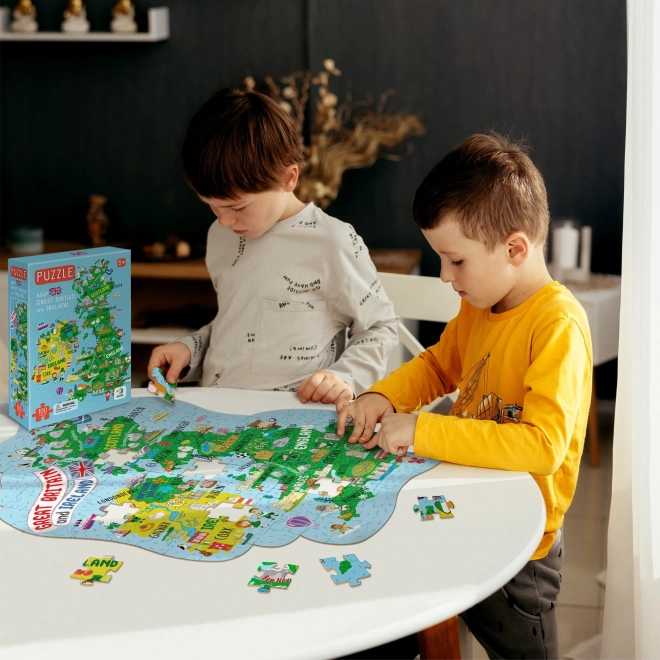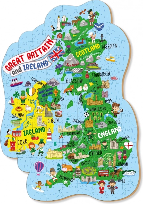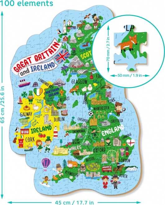 Odkryj urok wysp z edukacyjnymi puzzlami, które w przystępny sposób prezentują geografię Wielkiej Brytanii i Irlandii Północnej. Idealne dla dzieci i dorosłych, z opisami w języku angielskim do treningu języka i poszerzania wiedzy. Po ułożeniu puzzle mają około 65 × 45 cm i zawierają 100 elementów dla przyjemnej rodzinnej zabawy.