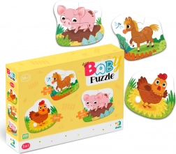 Ten zestaw baby puzzle to idealny wybór na pierwsze spotkanie dziecka z układankami. Trzy oddzielne konturowe obrazki zwierzątek z farmy mają różną liczbę elementów (2, 3 i 4), dzięki czemu dziecko może stopniowo się doskonalić i cieszyć się sukcesem przy każdym ułożonym obrazku.