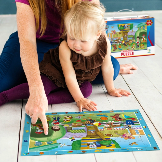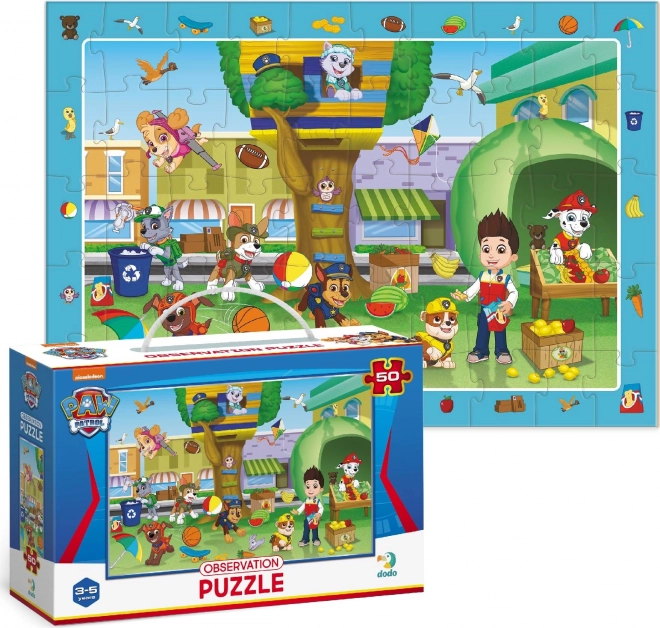 Zabawne puzzle dla dzieci DODO z motywem PAW PATROL zamieniają układanie w odkrywanie. Po ułożeniu dzieci zaczynają grę w wyszukiwanie i odnajdują obrazki na brzegach. Zestaw z 50 elementami oferuje kolorowy, szczegółowo zilustrowany obraz, który wspiera słownictwo, pamięć i koncentrację.