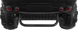 Dla komfortu i stabilności pojazd ma zawieszenie 2× z przodu i 2× z tyłu ze wzmocnionymi sprężynami. Dziecko skorzysta z 2 prędkości do przodu oraz biegu wstecznego, a rodzice docenią pilot 2,4 GHz z funkcją STOP i wyborem 3 prędkości. Nie brakuje przednich świateł LED z wyłącznikiem, panelu audio z MP3/USB/TF (microSD)/FM/AUX, wgranych melodii i klaksonu. Praktyczna jest tylna skrzynia 43 × 20 cm oraz składana rączka transportowa ułatwiająca przenoszenie. Maksymalne obciążenie to 40 kg, siedzenie z czarnej ekoskóry (36 × 21 cm) zapewnia wygodę także podczas dłuższej jazdy.