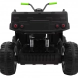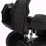 Wytrzymały dziecięcy elektryczny quad 4x4 o mocy 4 × 45 W i akumulatorze 12 V/10 Ah radzi sobie także w nierównym terenie dzięki miękkim kołom EVA, łożyskom i pełnemu zawieszeniu. Oferuje płynny start, 2 prędkości do przodu oraz bieg wsteczny, światła LED i rodzicielski pilot 2,4 GHz z funkcją STOP. Za zabawę odpowiada panel audio MP3/USB/TF/FM, klakson i melodie. Udźwig do 40 kg.
