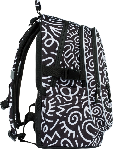 Odkryj wyważone połączenie funkcjonalności i designu. Ergonomiczny plecak z 3 komorami, organizerem i przegrodą na laptop 15" wygodnie pomieści szkolne wyposażenie i elektronikę. Dzięki regulowanym szelkom ramiennym, paskowi piersiowemu i pasom kompresyjnym doskonale dopasowuje się do sylwetki. Boczne kieszenie z wytrzymałego materiału są idealne na butelkę na napój.