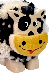Ta drewniana figurka krowy oferuje unikalny rustykalny wygląd dzięki kombinacji aż pięciu rodzajów drewna. Nie jest tylko zabawką, ale także piękną dekoracją, która doda wnętrzu odrobinę natury.