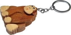 Odkryj naturalne piękno z drewnianym brelokiem w kształcie małpki, który jest ręcznie wykonany z nawet pięciu gatunków drewna: żółtego chlebowca różnolistnego, jasno-brązowego tamaryndowca malajskiego, ciemnobrązowej kasji zwyczajnej, różowej aniby oraz białej gmeliny arborealnej. Ręcznie domalowywany, jedynie drewno ma naturalny, niefarbowany kolor.