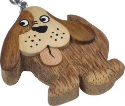 Podkreśl swój styl dzięki tej wyjątkowej drewnianej breloczce w kształcie psa. Ręcznie robiony dodatek łączy estetykę i funkcjonalność, dzięki czemu jest idealnym towarzyszem dla kluczy, torebek lub plecaków. Wykonany nawet z pięciu gatunków drewna o naturalnej kolorystyce, nienaruszonej chemicznym barwieniem.