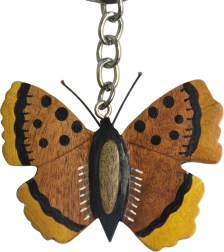 Ten duży drewniany brelok zdobiony motywem motyla wyróżnia się solidnym ręcznym wykonaniem i naturalnym wyglądem. Każdy egzemplarz jest ręcznie domalowywany, przy czym drewno zachowuje swoje autentyczne odcienie bez dodatkowego barwienia. Metalowe kółko zapewnia łatwe i bezpieczne przymocowanie do kluczy, plecaka lub torebki.
